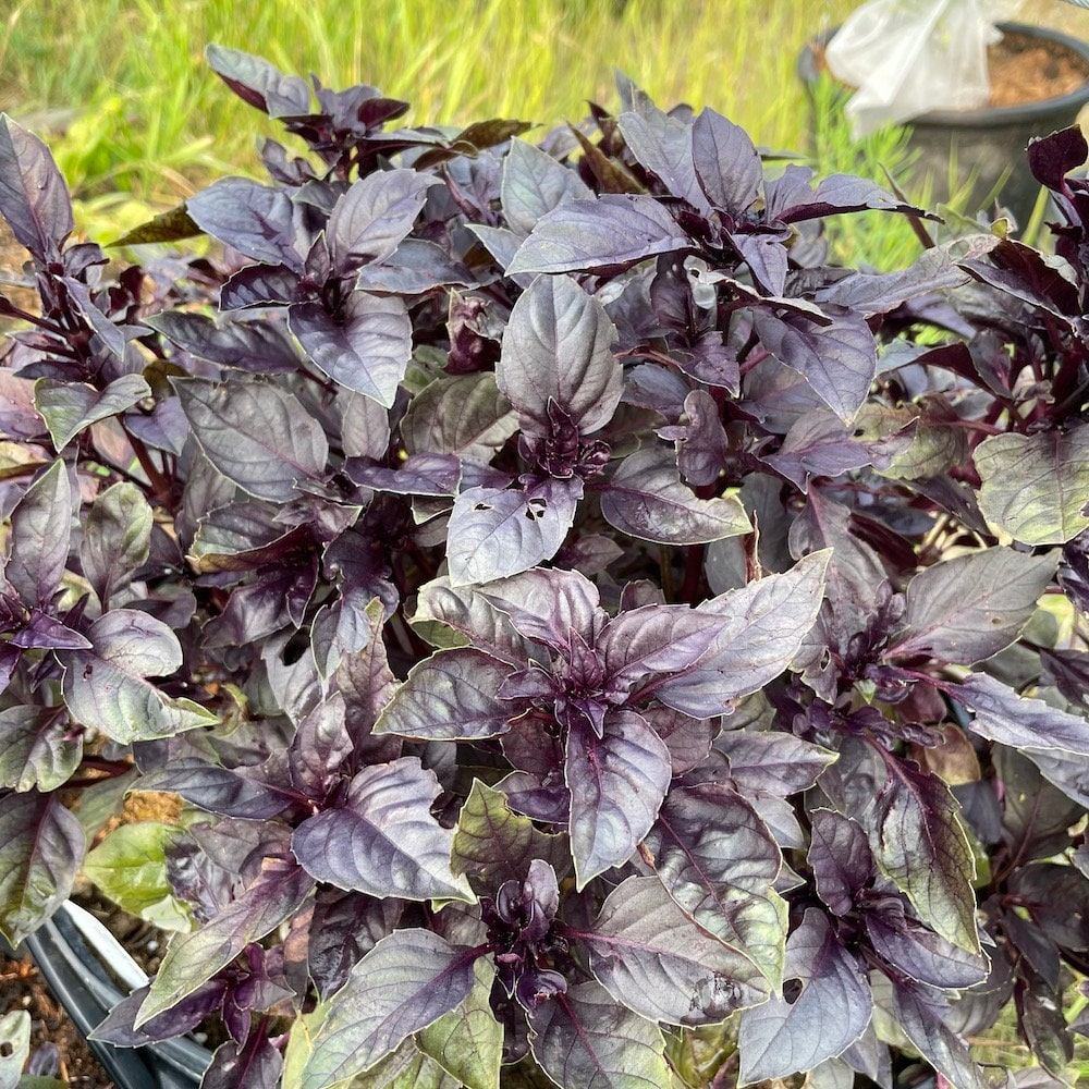 Avec une hauteur d'environ 45 cm et une largeur similaire, le basilic opale foncé est parfait pour ajouter une touche de couleur aux jardins d'herbes aromatiques ou aux conteneurs. Il prospère dans un sol bien drainé, nécessitant au moins six heures de soleil direct par jour. Un arrosage régulier, en veillant à ce que le sol reste constamment humide mais pas gorgé d'eau et en évitant de mouiller les feuilles sont essentiels pour prévenir les maladies fongiques. Une fertilisation toutes les 4 à 6 semaines avec un engrais tout usage favorise une croissance saine.
