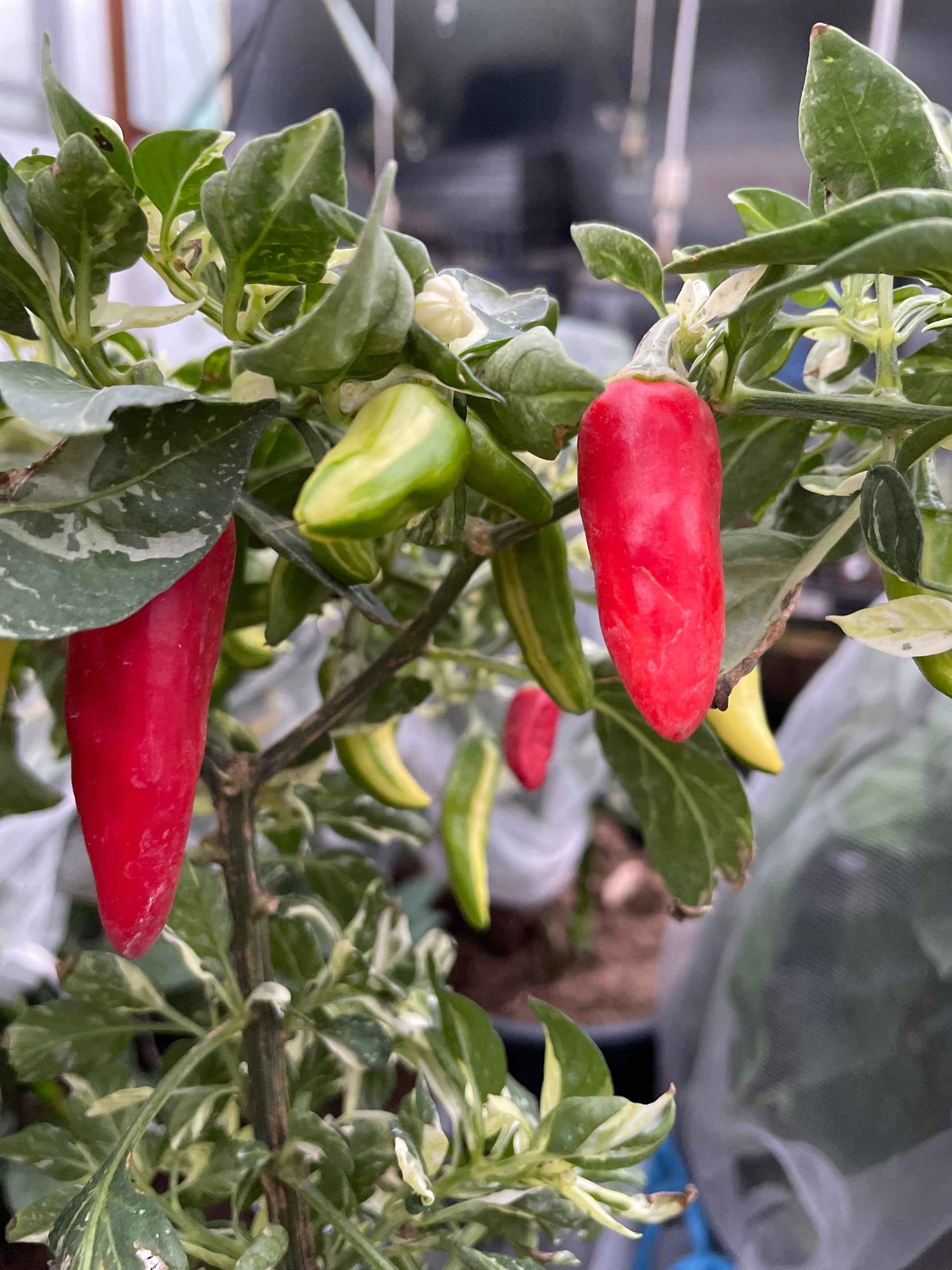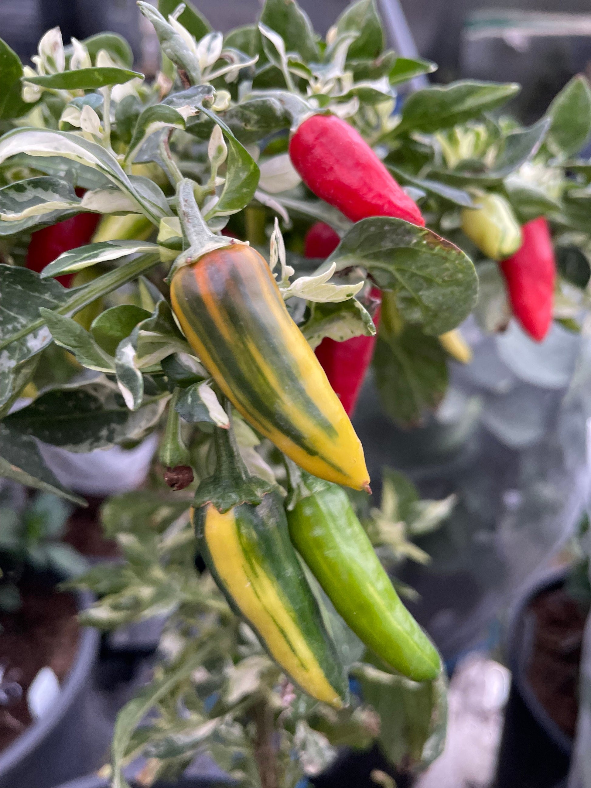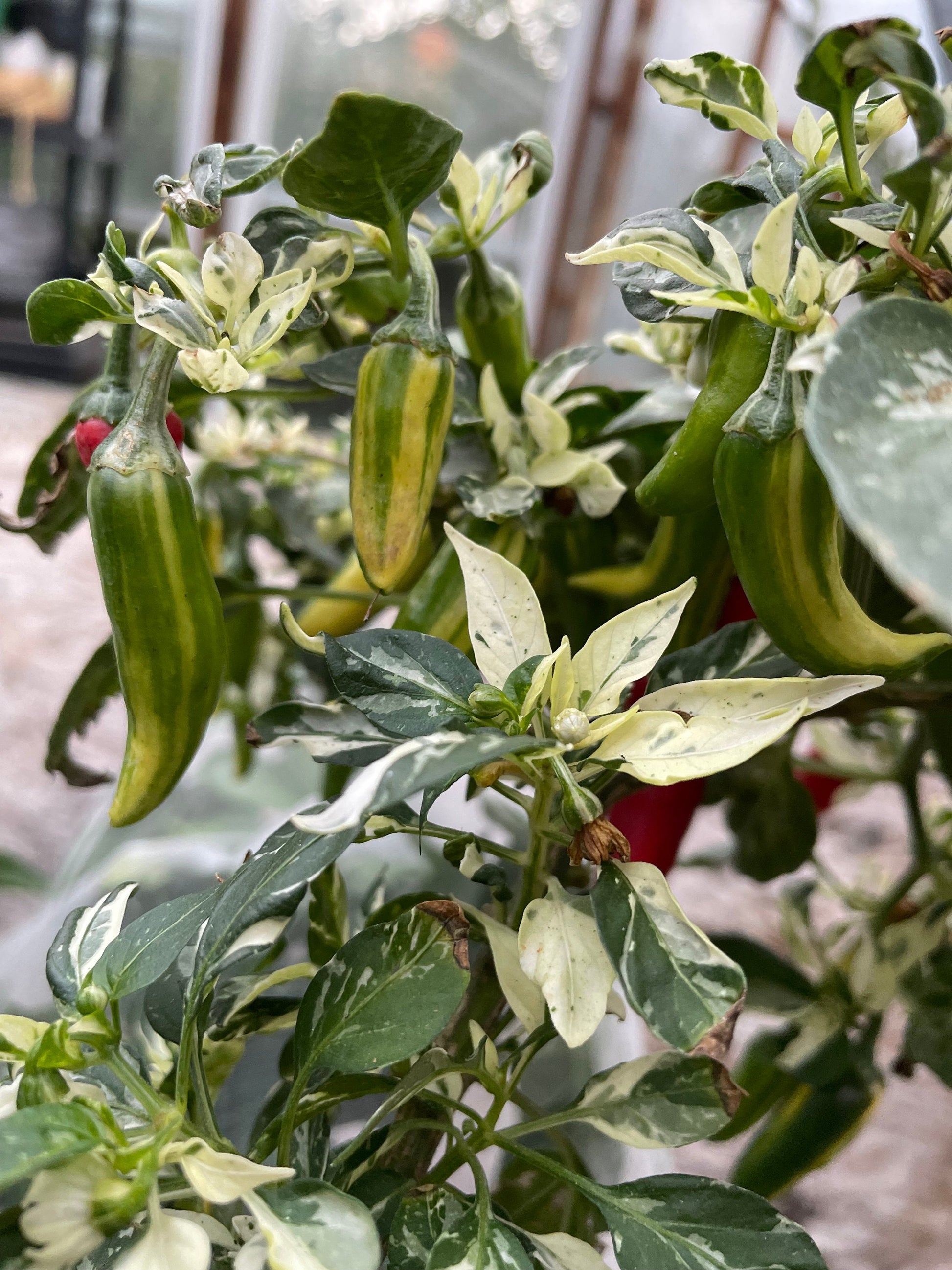 Le poisson est chaud entre 5 000 et 30 000 unités thermiques Scoville. Les poivrons sont rayés lorsqu'ils sont verts et les plantes ont de jolies feuilles panachées.