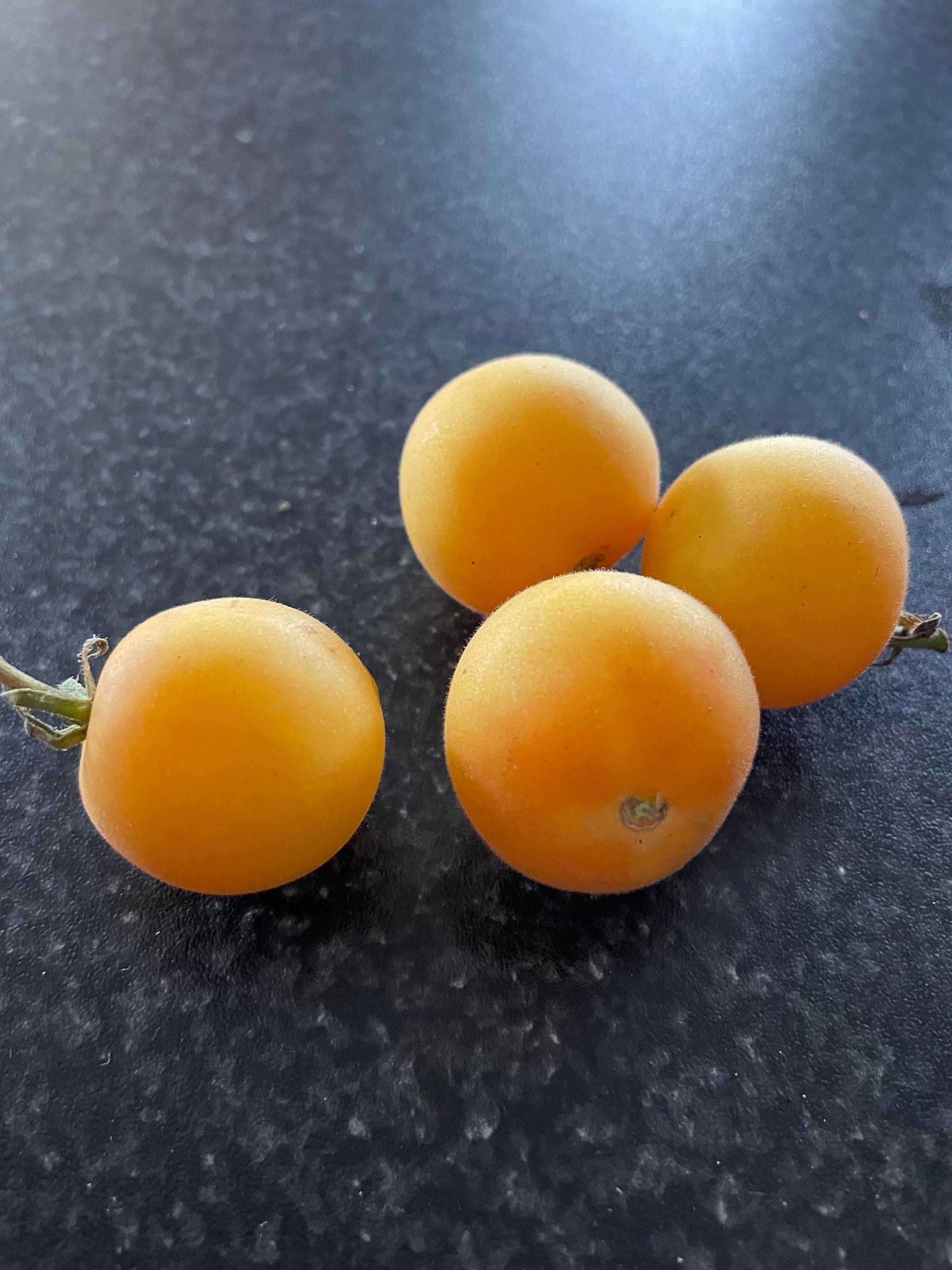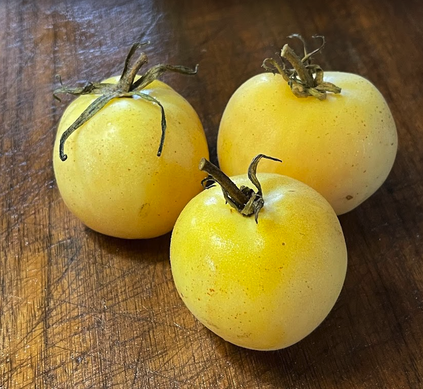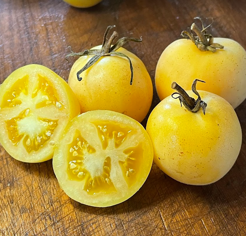 La tomate Garden Peach est une variété ancienne connue pour sa peau jaune pâle caractéristique, légèrement duveteuse, ressemblant à une pêche. Cette petite tomate ronde atteint une taille d'environ 60 à 120 grammes et a une saveur juteuse, douce et subtilement sucrée avec une touche d'agrumes. Le fruit mûrit en 70 à 80 jours, prend une douce couleur rosée à maturité et est idéal pour être consommé frais ou pour ajouter une note douce et fruitée aux salades.