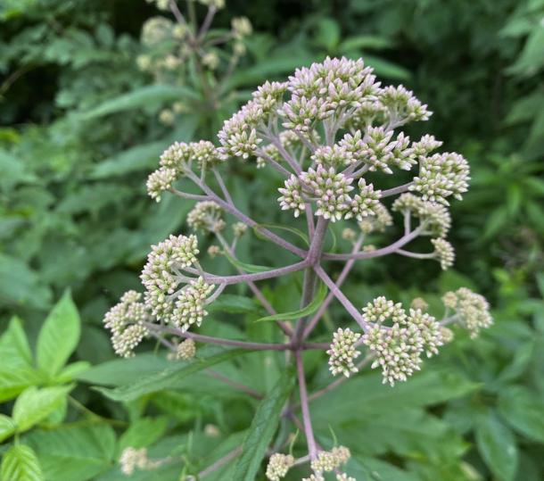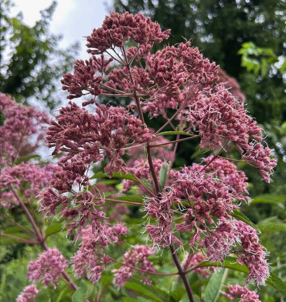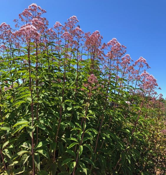 La trompette d'Amérique, aussi connue sous le nom de Joe-Pye Weed, est une grande plante vivace originaire d'Amérique du Nord. Elle peut atteindre une hauteur de 1,8 à 3 mètres, ce qui en fait un ajout remarquable aux jardins et aux zones naturalisées. Cette plante présente de grandes feuilles verticillées et produit des grappes de petites fleurs roses à violacées du milieu de l'été au début de l'automne. Les fleurs attirent divers pollinisateurs, dont les papillons et les abeilles. La trompette d'Amérique préfère les sols humides et bien drainés et peut tolérer un ensoleillement partiel ou total. On la trouve souvent dans les prairies, les marais et le long des berges des cours d'eau. Cette plante robuste est idéale pour créer des écrans naturels ou ajouter de la hauteur aux bordures mixtes dans les jardins canadiens.