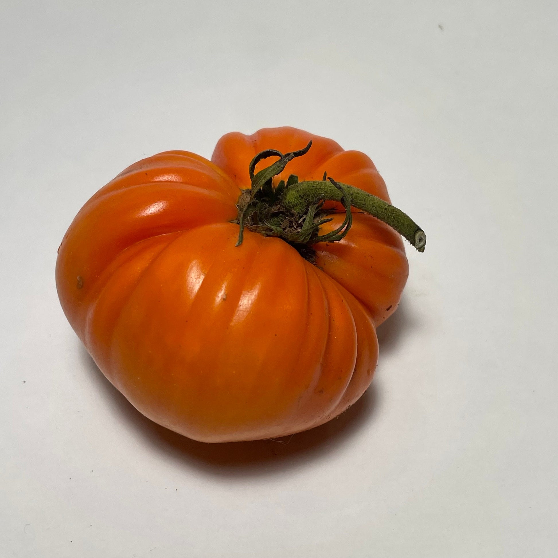 L'Orange Strawberry est une variété de tomate unique en forme de cœur de bœuf, connue pour sa couleur orange vif et sa saveur sucrée et fruitée. Les fruits peuvent peser jusqu'à 1 livre et ont une texture dense et charnue avec peu de graines, ce qui les rend idéaux pour les tranches ou les salades fraîches. Cette variété indéterminée mûrit en environ 80 à 85 jours, produisant des tomates en forme de cœur avec une consistance lisse et crémeuse. Les plants d'Orange Strawberry sont vigoureux et bénéficient d'un tuteurage pour soutenir leurs fruits lourds. La couleur vibrante et l'excellent goût de la variété en font un ajout distinctif à tout jardin.