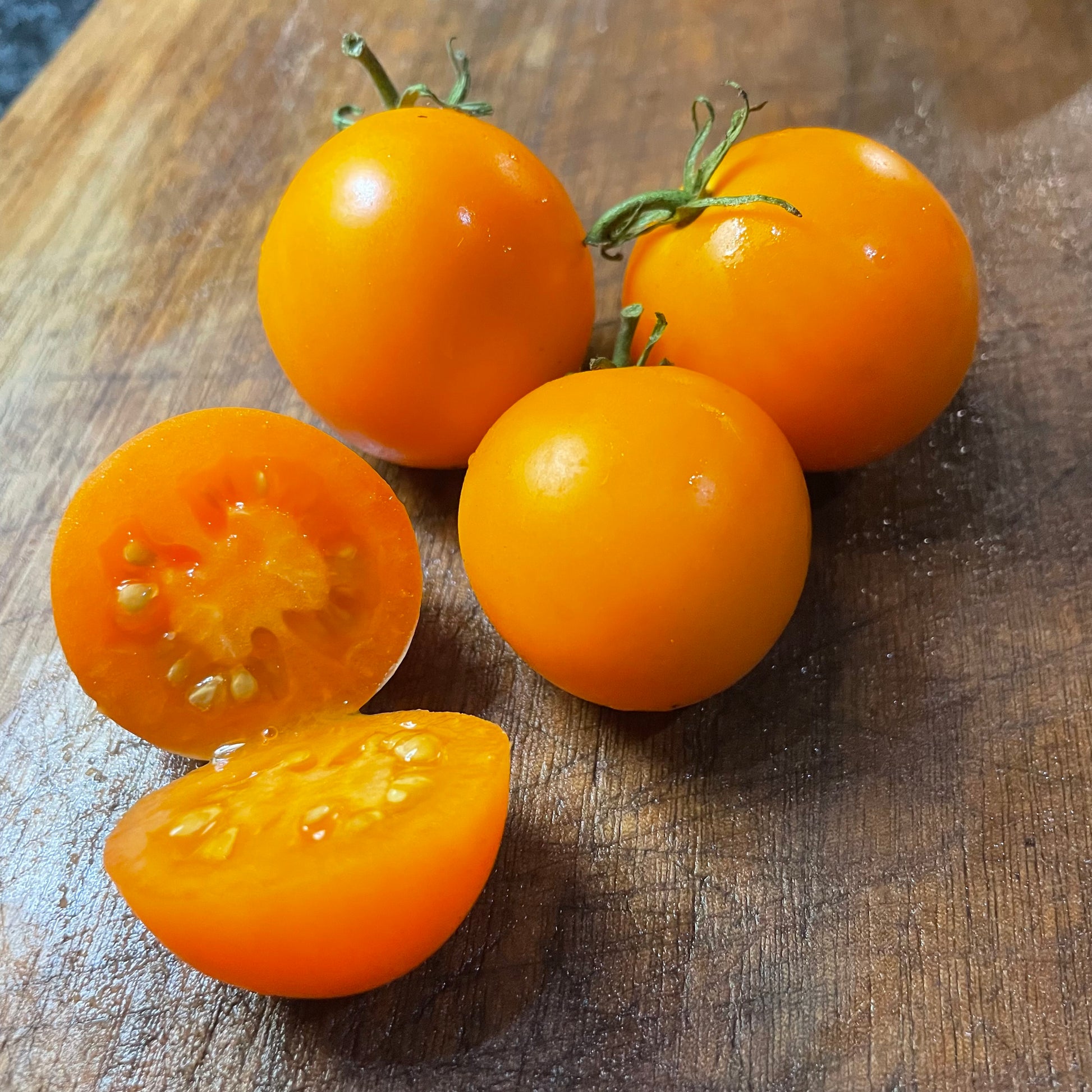 Un large choix de graines de tomates Sun Sugar cultivées localement dans notre pépinière. Nous avons conservé les graines de cette tomate hybride au cours des cinq dernières années et avons découvert très tôt que certaines étaient plus grosses (1,25 à 1,5") et conservaient le même bon goût. Il s'agit d'un travail de sélection en cours donc un peu expérimental, mais elles sont bonnes alors nous les partageons. Sun Sugar est considérée comme l'une des tomates les plus délicieuses.