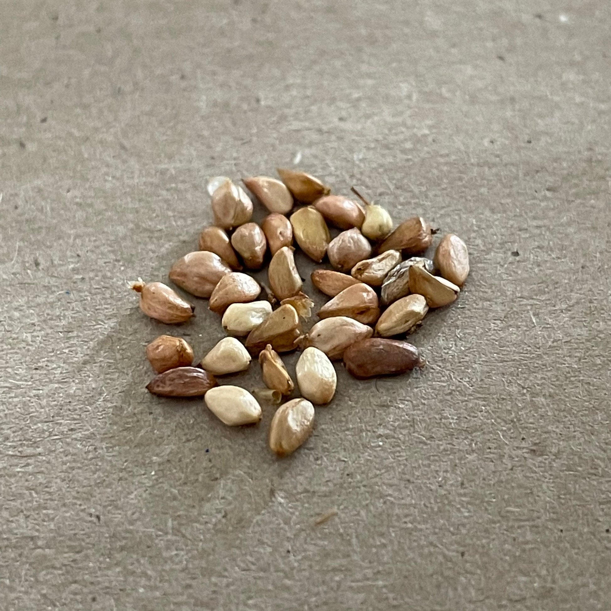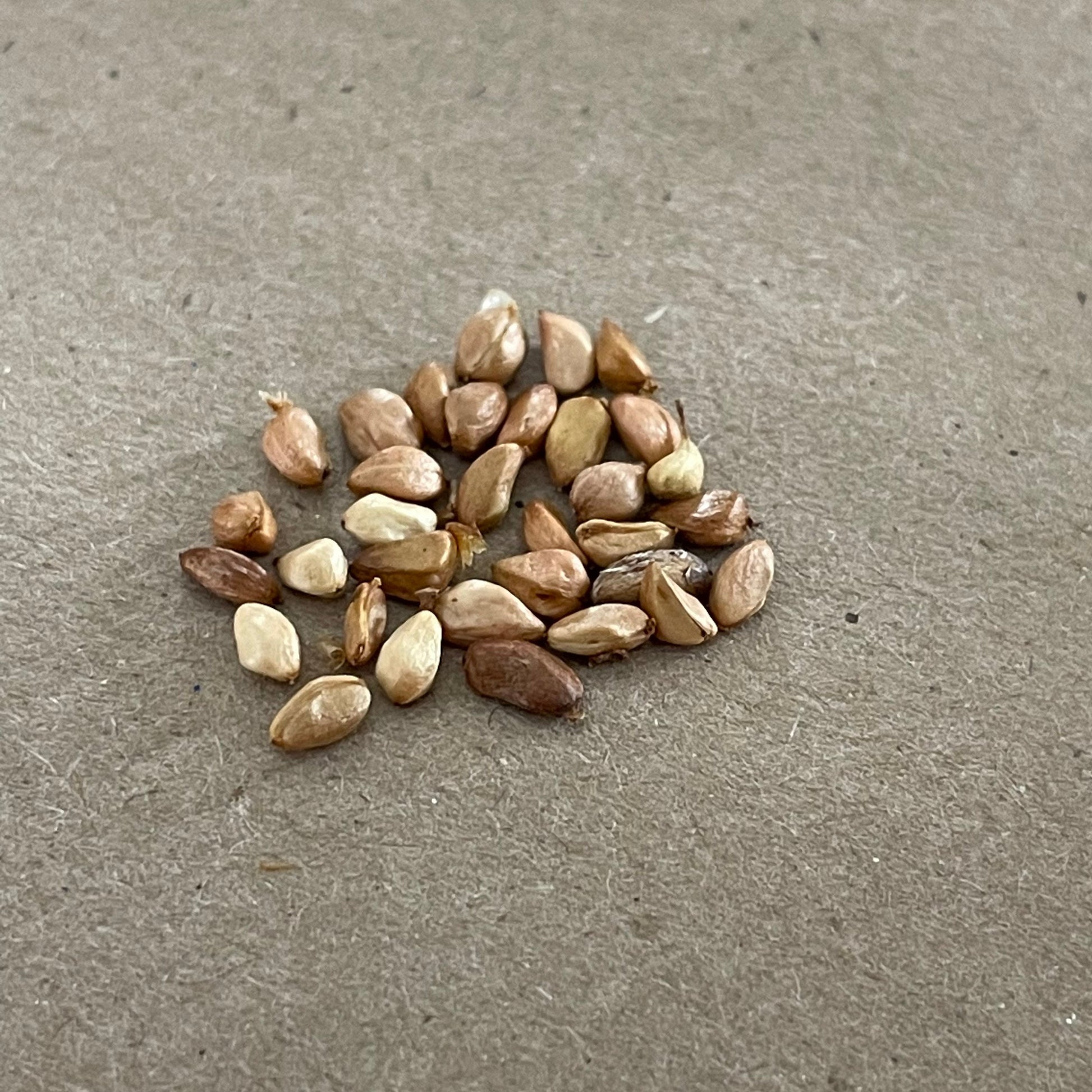 Graines de rosier sauvage récoltées localement dans la forêt autour de notre pépinière. Le rosier sauvage de Woodsii est une espèce de rosier indigène de taille moyenne (3 à 4 pieds de haut) qui a des fleurs roses, de petites épines et une forme étalée. Il pousse à l'état sauvage ici le long des sentiers forestiers. Nous récoltons les cynorhodons à la fin de l'automne lorsqu'ils sont complètement mûrs et nous séchons les graines qu'ils contiennent.