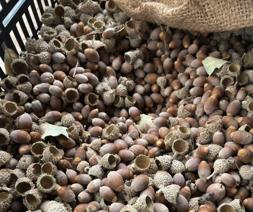 Germination Testing: Fresh acorns are float tested. After some time in cold storage we use a cut test to check them, a bright white healthy kernel indicates a seed in good shape.
