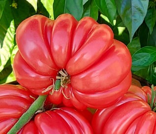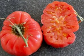 Pink Accordion is a large lobbed or ribbed heirloom tomato that's great for slicing.