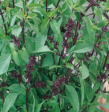 Thai Basil is an attractive variety with thin leaves, purple flowers and a great licorice / anise flavour.